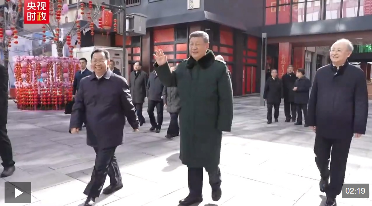 2月10日上午,在北京考察调研的习近平总书记来到隆福寺街区,了解当地丰富节日市场供应、打造城市特色活力片区等情况,看望慰问基层干部群众。这一天恰逢农历小年,隆福大厦前,新春市集吸引了大量市民和游客。习近平饶有兴致察看各式年货摊位,同现场群众亲切交流。