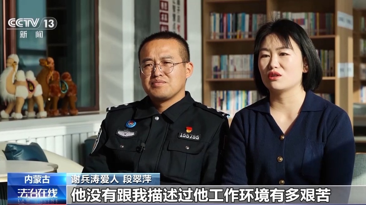 谢兵涛爱人 段翠萍:刚开始的时候他没有跟我描述过他工作环境有多艰苦,后来有一次我过来找他,坐火车越走越远越深,我就看从绿草变黄土地,就看着心里就觉得他在这真的挺辛苦的,越走越荒凉,因为我们那边都是大山有树,然后这边越走越偏远。