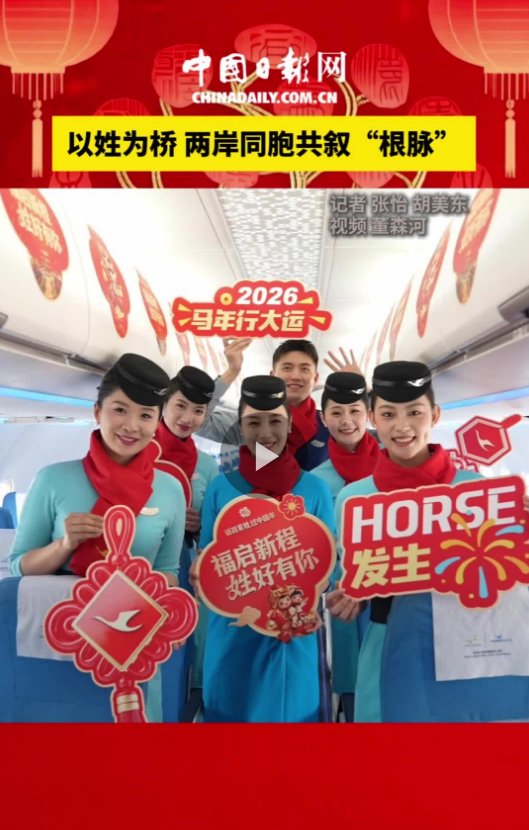 近日,厦门航空在多条航线上推出#中华姓氏文化主题航班。机舱内年味满满,姓氏红包暖心派送,旅客们互动分享家族故事,不少台胞现场讲述姓氏渊源,在万米高空共话同根同源的血脉亲情。戳视频,看春运航线如何化身文化桥梁,让两岸同胞的回家路更有年味、更有温度。