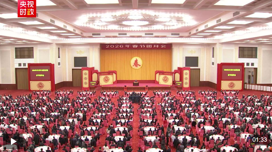 中共中央、国务院14日上午在人民大会堂举行2026年春节团拜会。中共中央总书记、国家主席、中央军委主席习近平发表讲话。