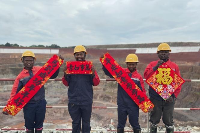 中方和刚果(金)员工围聚一起,贴春联、挂灯笼、装彩灯,一张张笑脸映着喜庆的红灯笼,空气中处处弥漫着浓浓的年味。刚果(金)当地员工恩戈伊掏出手机,对准红灯笼和身边的伙伴,将这份跨越国界的喜庆与温情,定格在镜头里。