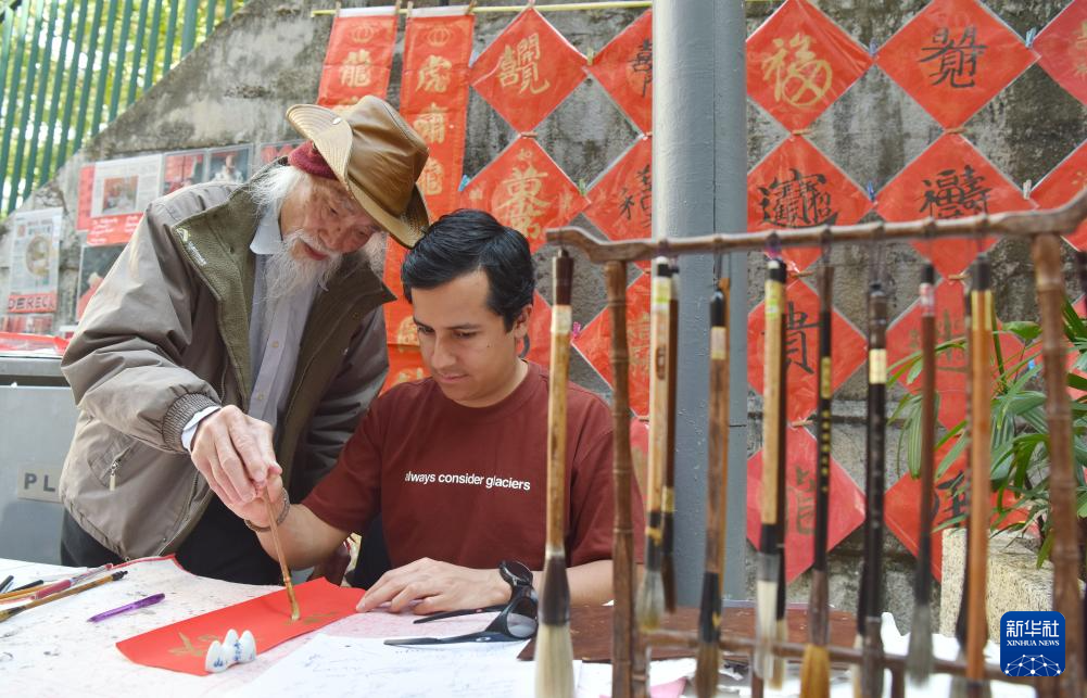 新华社香港2月16日电 题:红笺墨韵 香江年味