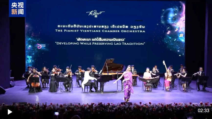 13日,老挝人民革命党中央总书记、国家主席通伦携夫人及老挝多位政治局委员出席在万象举行的“欢乐春节”新春音乐会。本场音乐会由中国驻老挝大使馆与老挝文化和旅游部联合举办,中老艺术家共同演绎《梁祝》《万象之心》等作品,赢得现场观众热烈掌声。