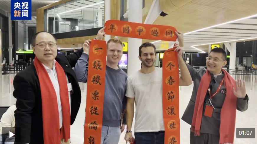 总台记者 陈林聪:我现在所在的位置就是英国最大的门户机场——伦敦希思罗国际机场的2号航站楼。在现场我们可以看到,候机大厅内的工作人员正向旅客赠送春节的文创礼包,吸引了不少英国乘客驻足拍照,了解春节的习俗。