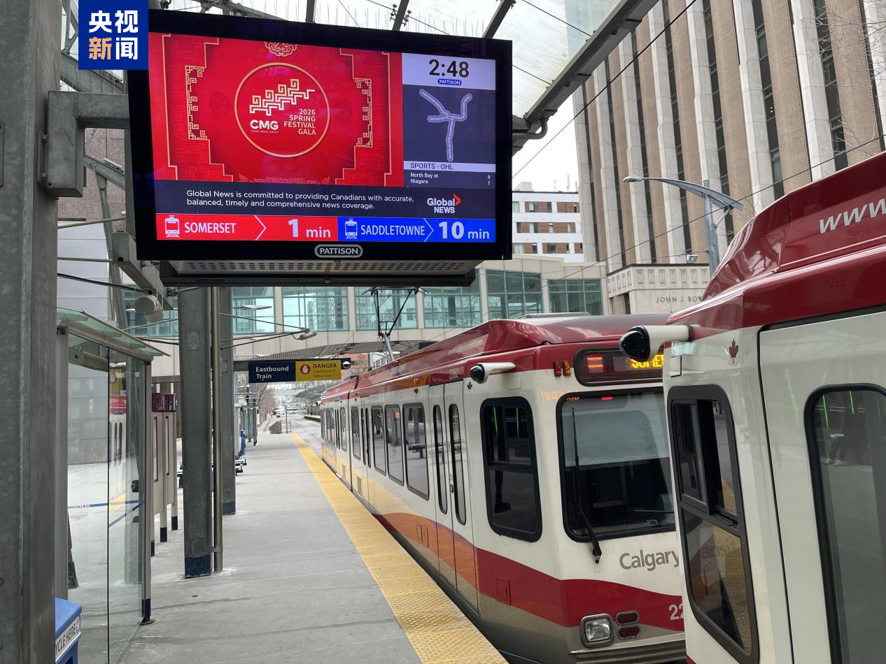 当地时间2月16日除夕,随着丙午马年脚步的临近,中央广播电视总台春晚宣传片跨越重洋,首次登陆加拿大城市轻轨系统,同步在埃德蒙顿、卡尔加里两大城市滚动播出。
