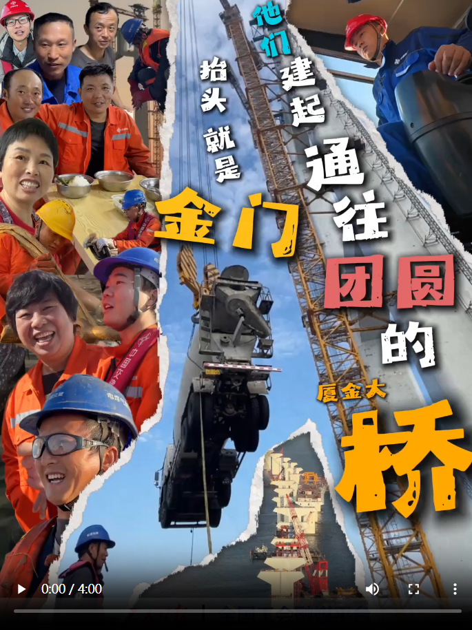 大桥的建设者们来自五湖四海,用汗水筑就“连心桥”。凭着专业与默契,让这座跨海大桥如春笋破土般拔节生长,一桥飞架,拉近山海距离,连通两岸民心,更将铺就一条通往团圆与幸福的坦途。(工人日报客户端记者 史宏宇 吴凡)