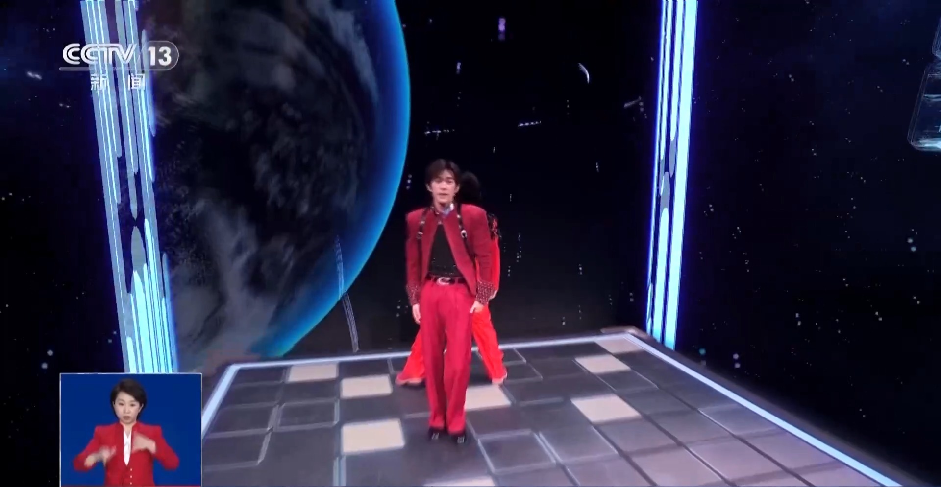 除了视觉设计的表达,本届春晚在舞台设计上打破了一号演播厅有限的空间概念,利用XR(混合现实)技术,创造出了虚实结合的无限空间延展,在《智造未来》的节目中,导演组打造了现实的舞台和虚拟的科技空间,演员在两个空间中穿梭,打造无缝穿越的大视觉概念,让观众可以更好地观赏一场沉浸式的视听盛宴。