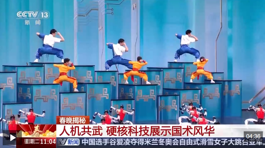 武术节目《武 BOT》以传统武术为根基,融入前沿智能科技,将刚劲有力的功夫招式与灵活精准的机器人表演相结合,成为本届春晚极具视觉冲击力的创新节目之一。从招式设计到舞台呈现,节目都在传统与现代之间找到了全新的融合点。让数十台人形机器人同时完成复杂又精准的动作,操作起来却十分简便,一键即可启动。这套全新研发的集群自动控制系统,专门为春晚大型舞台表演量身打造。