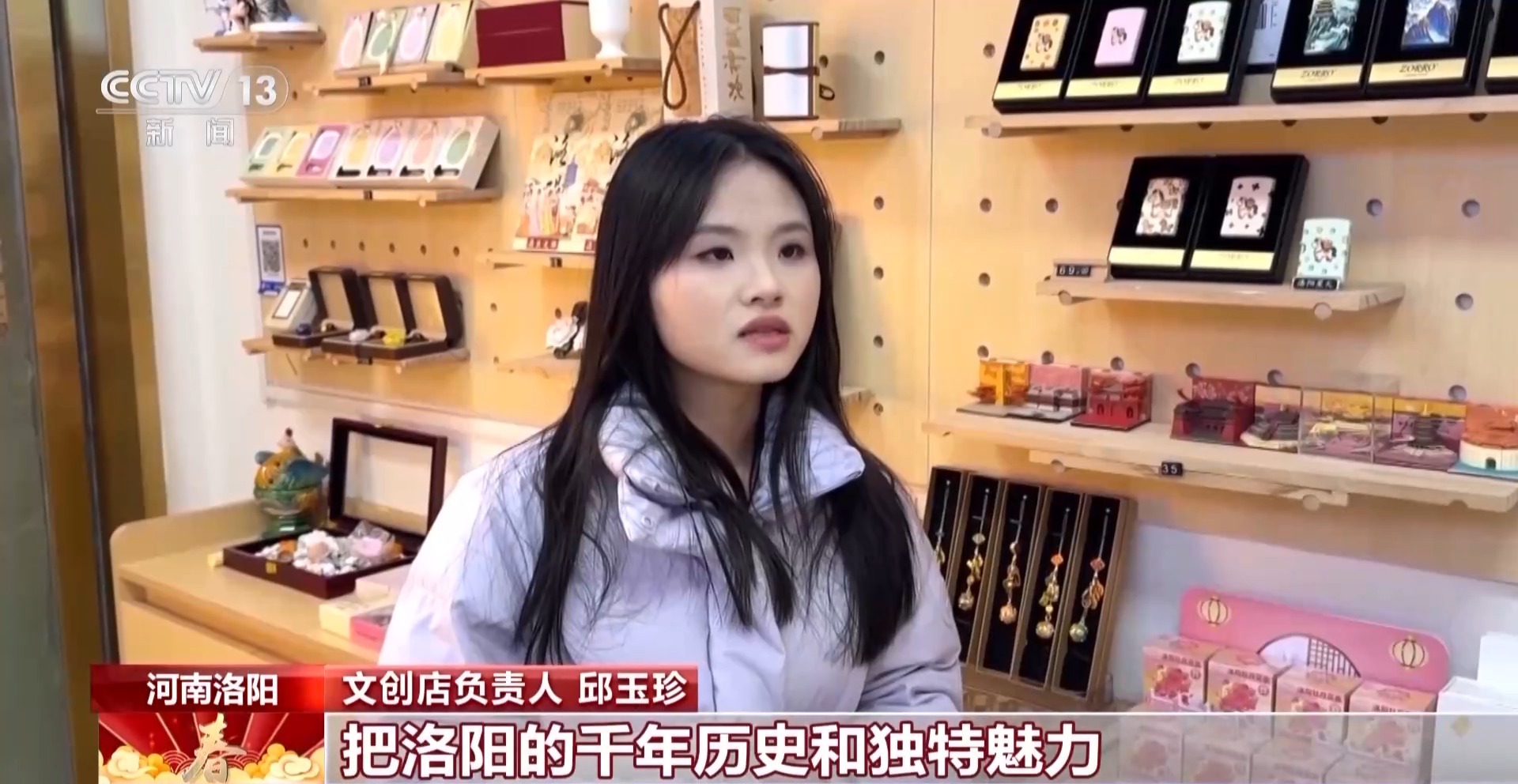 文创店负责人 丘玉珍:把洛阳的千年历史和独特魅力都流进一件件文创作品里,让大家能够看得见摸得着,等以后瞧见这些文创的时候,还能瞬间想起在洛阳的美好记忆。
