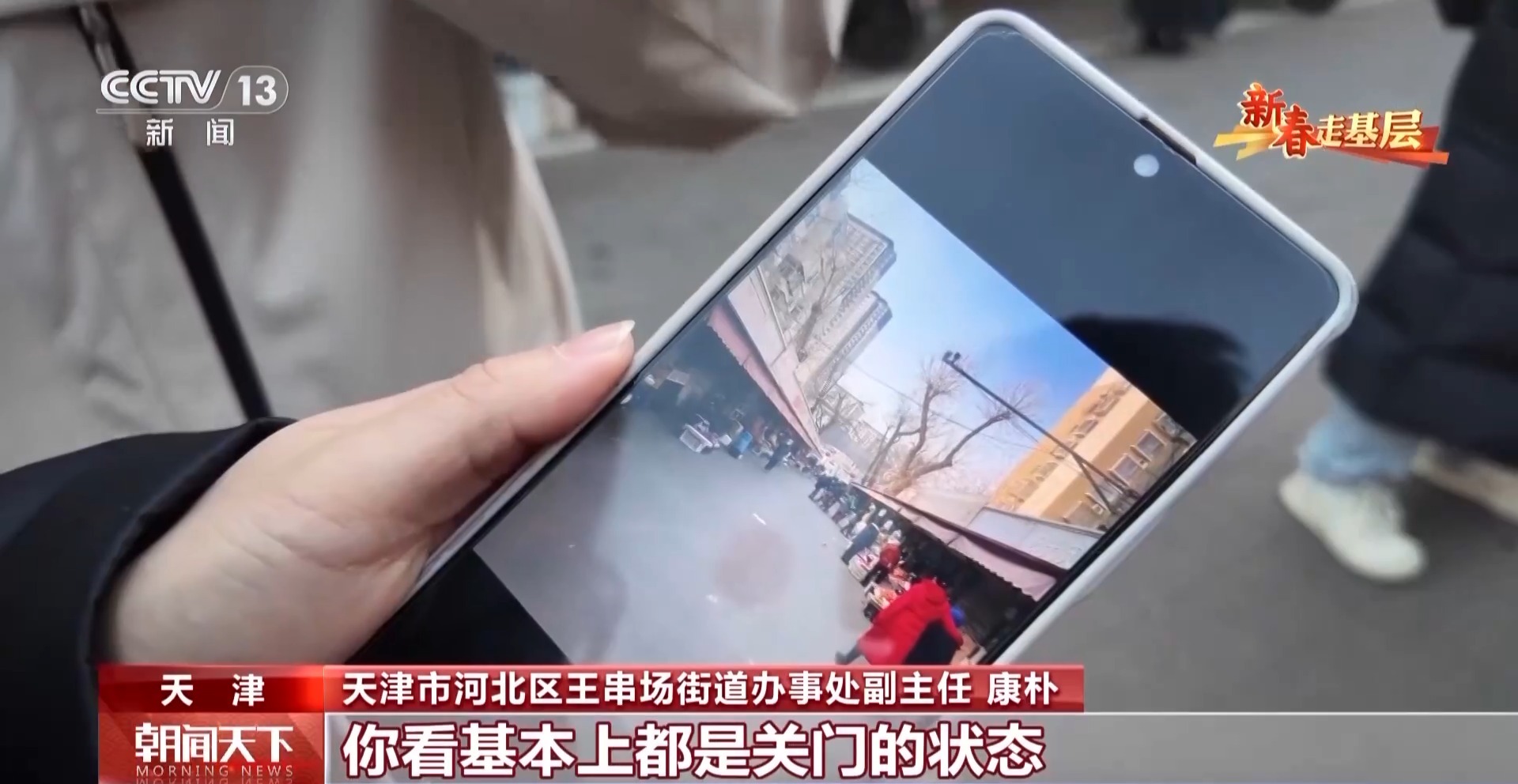 康朴是王串场街道办事处的工作人员,春节前这几天,她在小巷里和同事们一起走访商户、倾听需求。