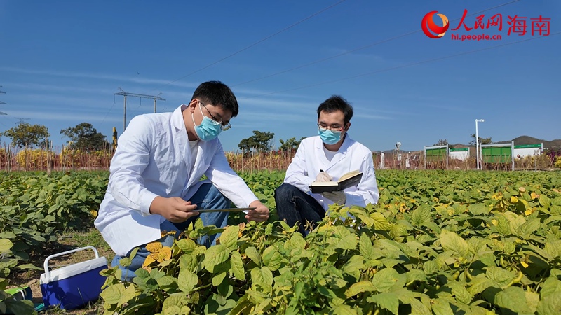 海南大学三亚南繁研究院副院长夏志强在工作。人民网记者符武平摄
