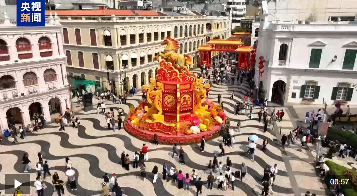 游客 陈颖旋:我们来澳门过春节,这边非常热闹,有好多不同的表演节目,我们都祝大湾区继续繁荣,祖国会越来越好。
