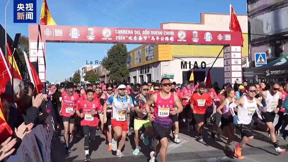 当地时间21日上午,西班牙马德里自治区举办“马年春节公路跑”活动。