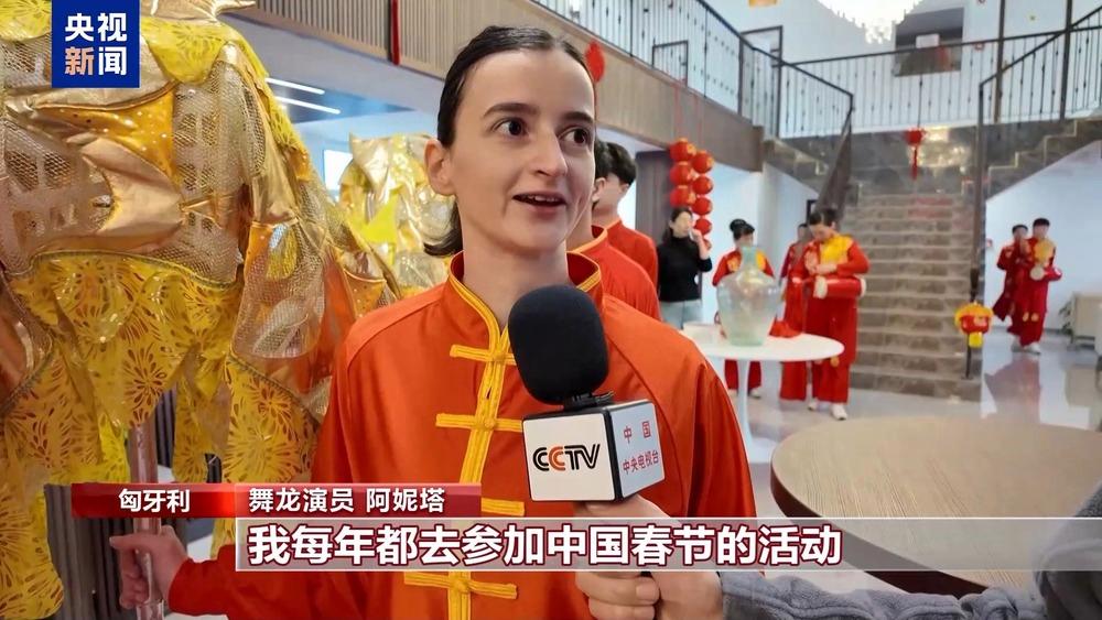 舞龙演员阿妮塔:我每年都去参加中国春节的活动,包括在布达佩斯唐人街举行的庙会。我经常参加与春节有关的活动,非常享受春节文化氛围。