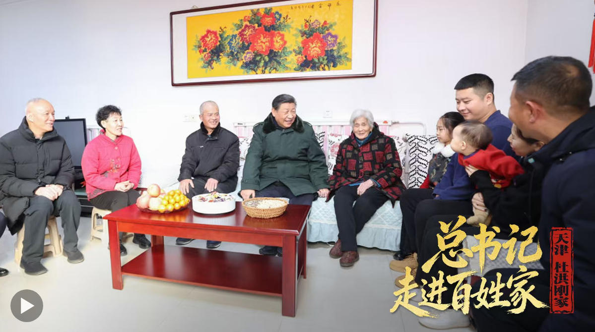 2024年春节前夕,习近平总书记来到经历过洪灾的天津市西青区辛口镇第六埠村,走进四世同堂的村民杜洪刚家,同一家人亲切拉家常,一笔一笔算灾情损失和灾后生产发展、就业增收账。习近平说,国泰民安,民安才能国泰,党中央和各级党委、政府时刻记挂着大家的安危冷暖,也希望乡亲们依靠自己的双手重建美好家园,创造幸福生活。