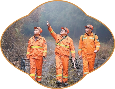 王勇(中)和护林员们一起巡山。