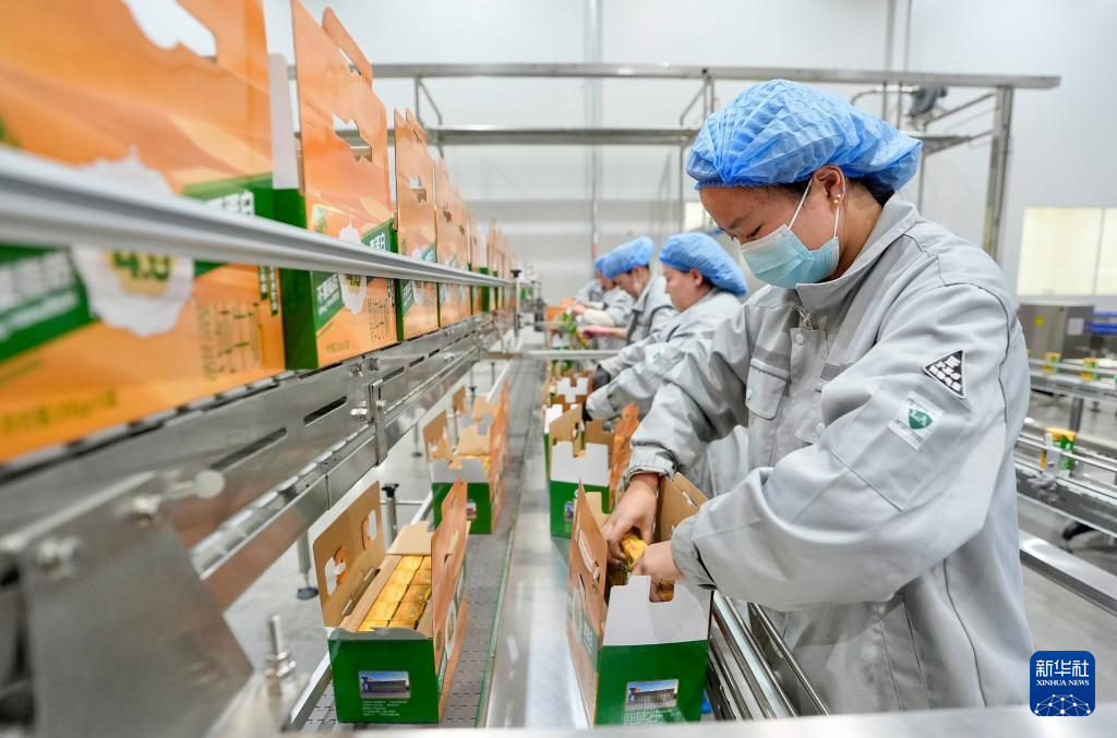 2月24日,工人在位于宁夏银川市贺兰县的原源(宁夏)鲜乳制品有限公司包装车间内进行打包作业。
