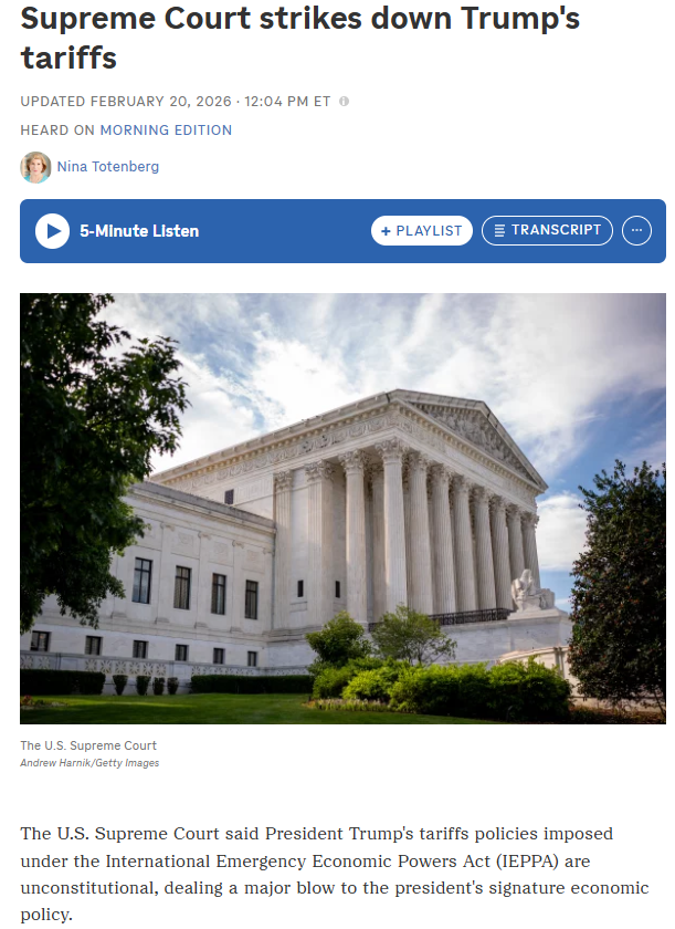 美国最高法院20日公布裁决,认定特朗普政府援引《国际紧急经济权力法》实施的大规模关税政策违法。特朗普当天随即宣布,将援引《1974年贸易法》第122条,对全球商品加征10%进口关税,为期150天,以取代被最高法院认定违法的关税。21日,特朗普进一步加码,宣布税率从10%上调至15%。