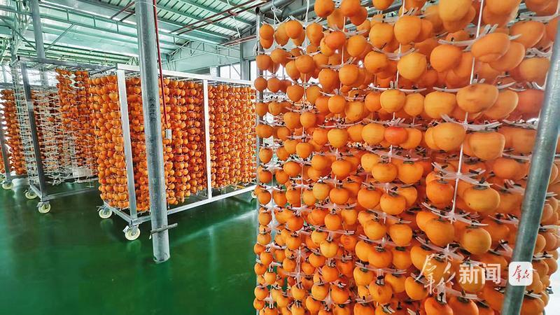 目前,富平柿子树栽植面积36万亩,年产鲜柿5.75亿公斤,加工柿饼1.15亿公斤,全产业链产值达100亿元。同时,衍生出柿子酒、柿子醋、柿染等产品,非遗工坊、文创产品手工作坊遍地开花,不少年轻人返乡,靠着柿子种植、柿饼加工、直播带货增收致富。