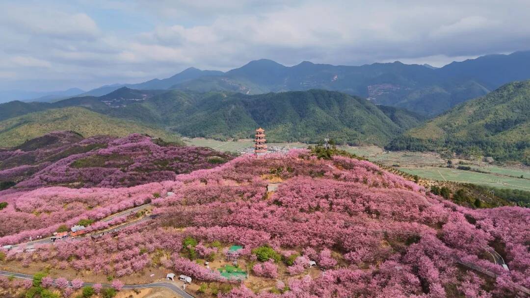马年新春,赖坊镇的山间花海如潮。两千亩樱花园迎来盛花期,三十万株樱花次第绽放。