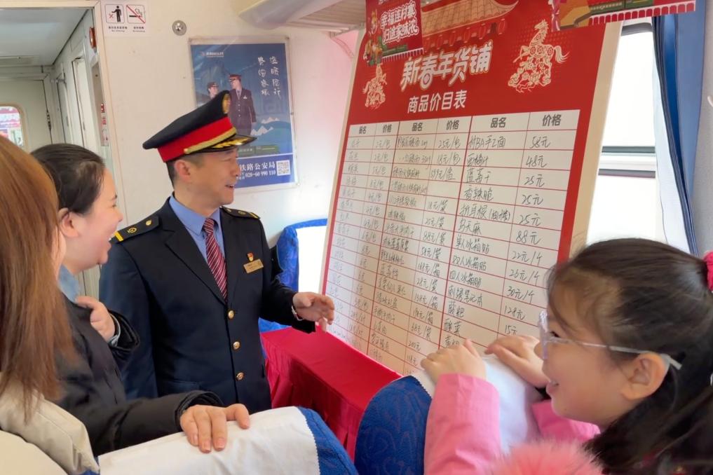 被网友称为“带货车长”的胡贵川穿梭在车厢中,从最初的帮老乡吆喝卖菜,到建立“绿皮火车超市”微信群,他与班组将服务做到了乡亲们的心坎里。今年春运,非遗展示、邮政主题、村火车大舞台等车厢同步开放,让这列慢火车成为展示乡村振兴成果的窗口。