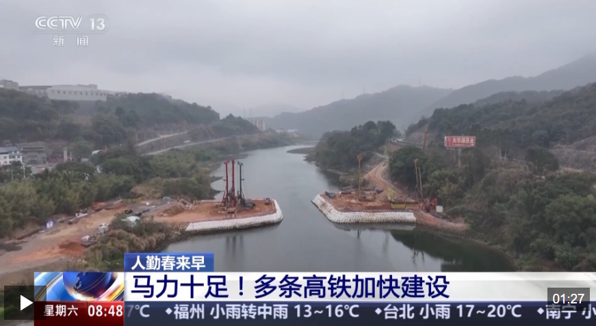 在新建温福高铁的建设现场,全线700多名建设者正以饱满的干劲投身施工一线。在位于福建福安的全线关键控制性工程——赛江特大桥施工现场,工人们正全力攻坚水中墩施工,多台旋挖机同步向水下花岗岩掘进。