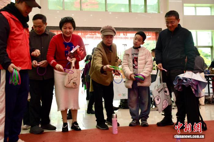 1日,趣味游戏区内,套圈圈等趣味环节吸引了不少民众参与体验。 张雨欣 摄