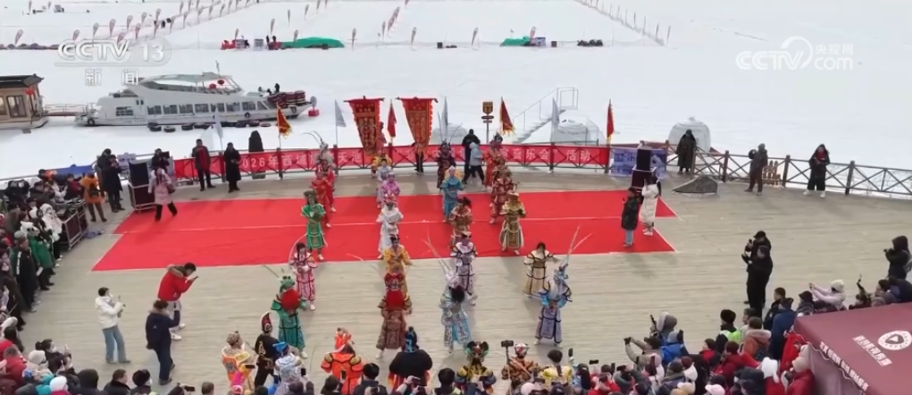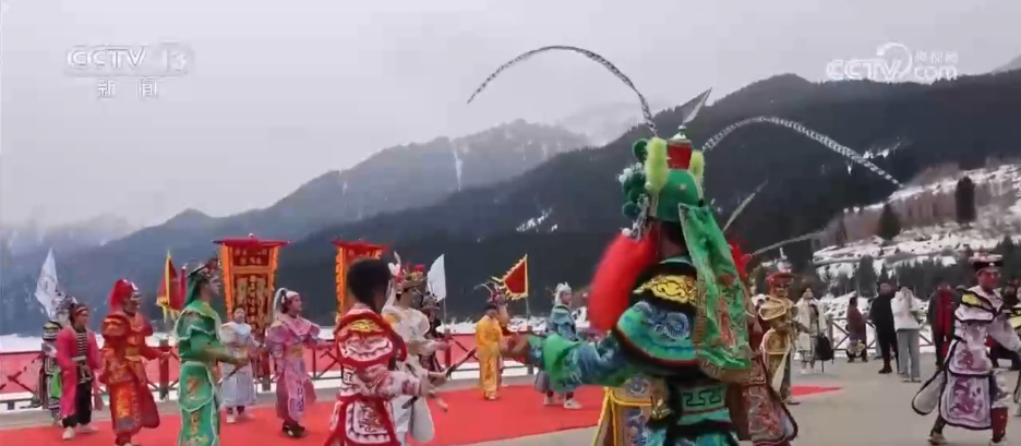 央视网消息:元宵节到来之际,新疆天山天池景区上演了一场南北文化相逢的精彩演出,广东英歌舞邂逅西北的高山湖泊,为游客营造出独特的节日氛围。