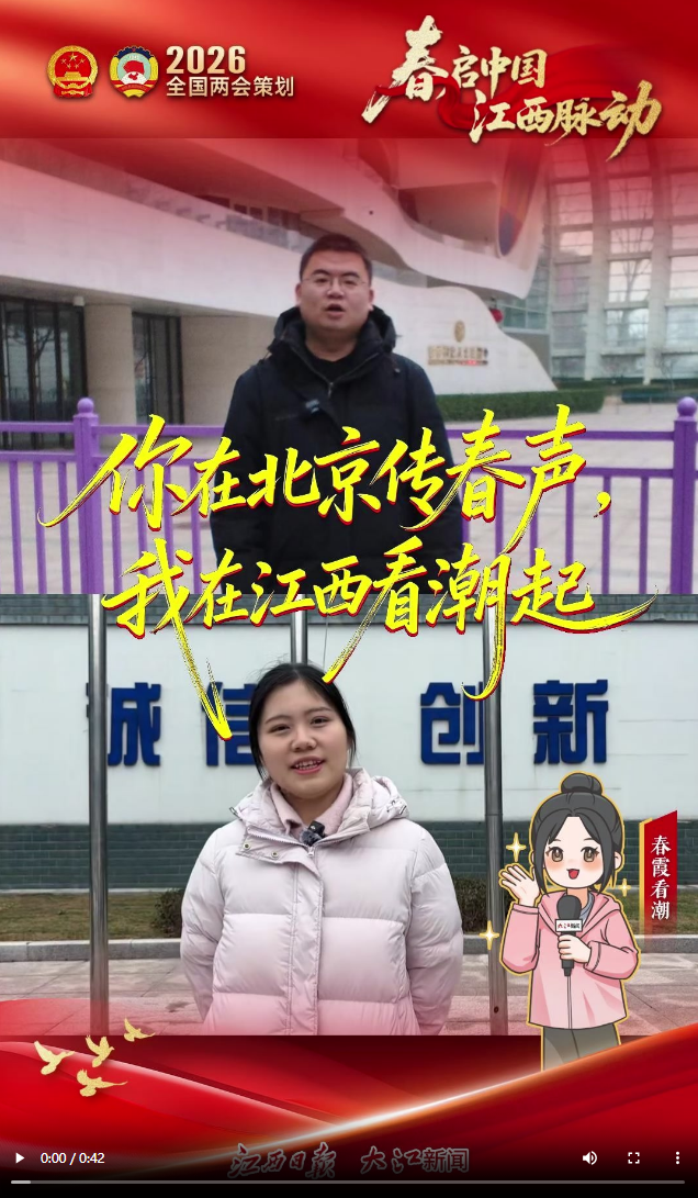全国两会如期而至,一场关于春天的对话,也悄然开启。一个往北走,奔赴北京现场,传递春声;一个留在江西,深入生产第一线,记录现场。用各自的方式,记录着同一片土地上的脉动。