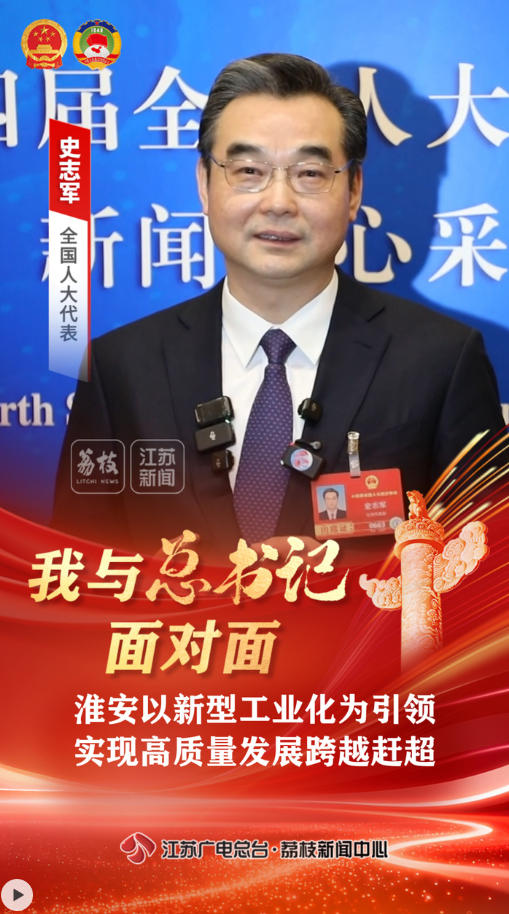 淮安市委书记史志军代表向总书记汇报了近年来淮安在坚定不移走好新型工业化道路、全力巩固拓展经济向上向好态势等方面取得的进展和成效。