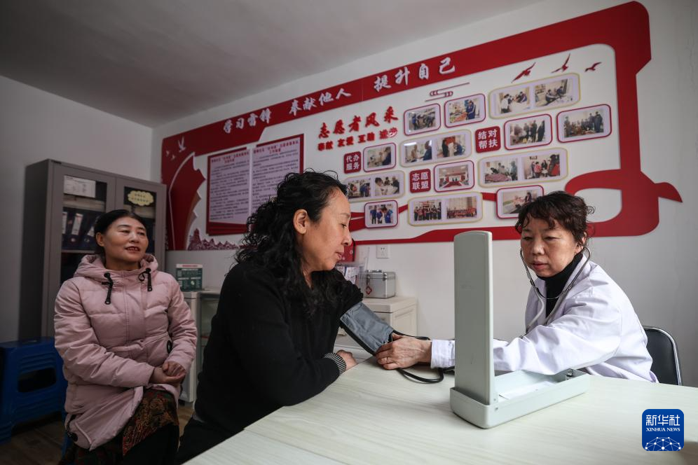 3月5日,体检机构的代办员在抚顺市望花区和平街道雷锋社区代办站为居民量血压。
