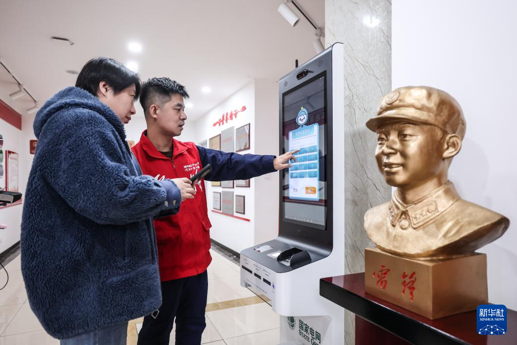 2月28日,国网抚顺供电公司顺城分公司的代办员在东华园社区代办站为居民办理业务。