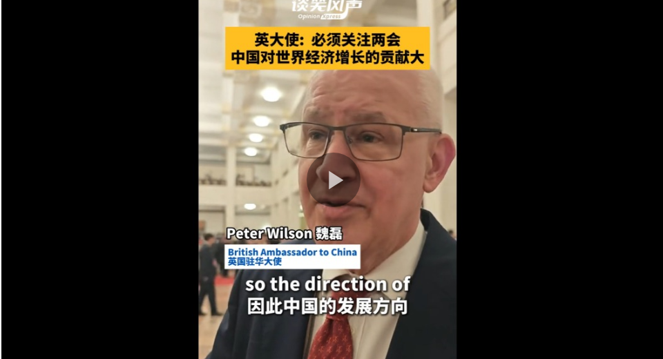 全国两会进行中,英国驻华大使魏磊表示,高度关注中国即将出台的“十五五”规划,希望进一步了解中国对经济增长的预期、对未来政策走向的预判,以及这些政策将对世界产生怎样的影响。魏磊说,中国在全球经济增长中发挥着举足轻重的作用,未来发展方向对世界具有深远意义。(记者:赵满丰 剪辑:程子馨 高艺迪 审核:单学英)