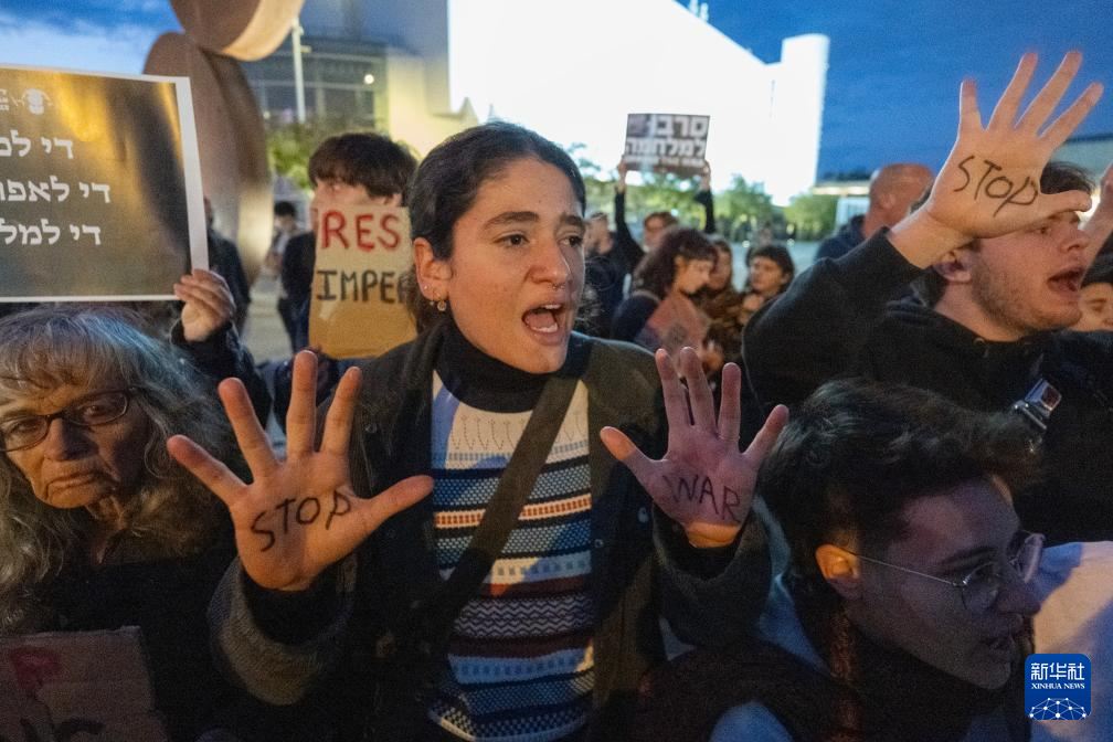 3月7日,人们在特拉维夫的一处广场举行集会,抗议以色列的军事行动,要求以色列停止战争行为。
