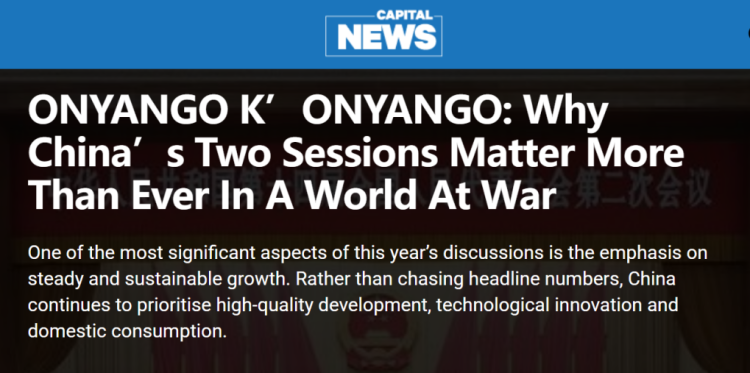 国际在线专稿:在全球地缘政治紧张局势加剧、国际秩序面临不确定性的背景下,正在进行的中国全国两会受到国际社会广泛关注。肯尼亚Capital FM广播电台刊文指出,中国两会不仅是观察中国发展方向的重要窗口,也向外界释放出稳定、合作与长期发展的积极信号。