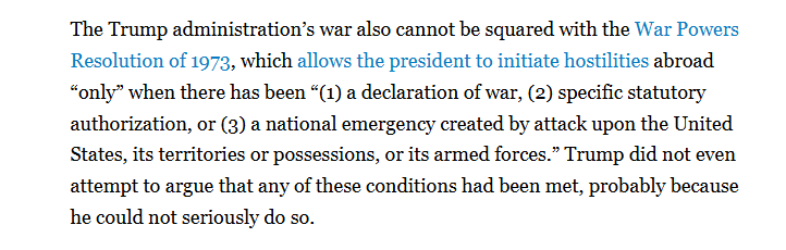 根据美国《政客》(Politico)新闻网报道,美国宪法规定宣战权属于国会,但此次军事行动并未获得国会明确授权。特朗普政府以“消除迫在眉睫的威胁”为由发动攻击,但未能向国会和公众提供伊朗即将对美国本土或海外目标发动具体、可验证袭击的充分证据。相反,其公开言论引用的案例多为数十年前旧事,与“迫在眉睫”的法律定义相去甚远。