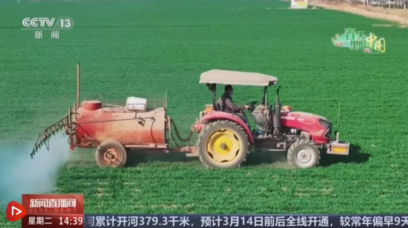 近日,记者走进河南扶沟县高标准农田示范区,千亩良田长势喜人。田间地头,现代化机械有序穿梭、高效作业,生产效率较传统模式大幅提升。农户们抢抓春季管理黄金窗口期,加紧推进小麦除草、追肥等关键田管作业,一派繁忙有序的春耕景象。种植户称,现在小麦正处于返青期,根据天气预报,最近有一次比较强降雨,现在把肥施上,对于小麦吸收水分、吸收肥料都起到很大作用。