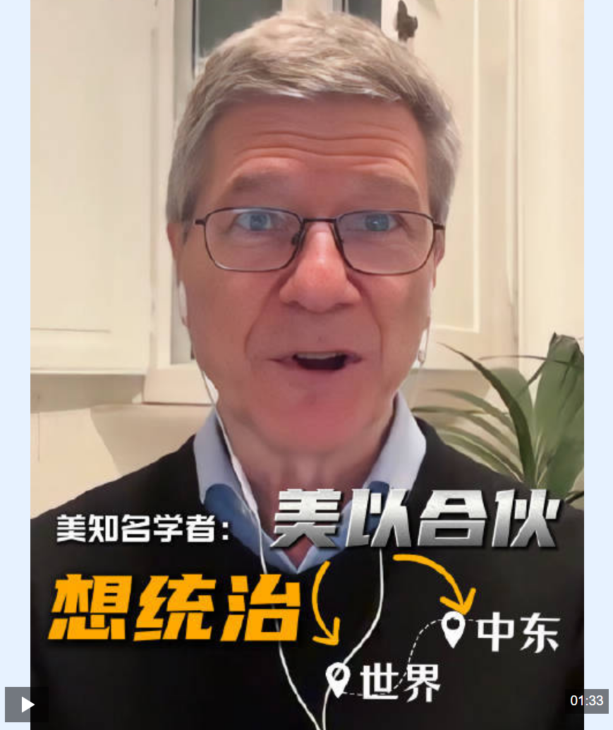 萨克斯强调,这是一场“选择之战”,背后是美国与以色列的合伙:美国想统治世界,以色列想统治中东,这是两国“共同的疯狂行为”。