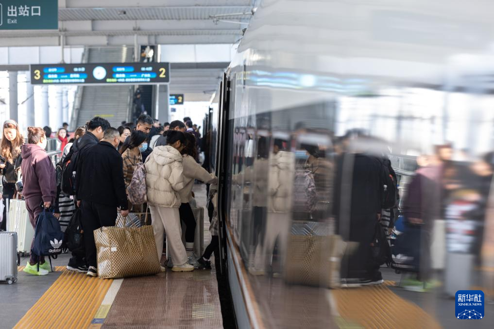 3月13日,旅客在浙江湖州站站台乘车。