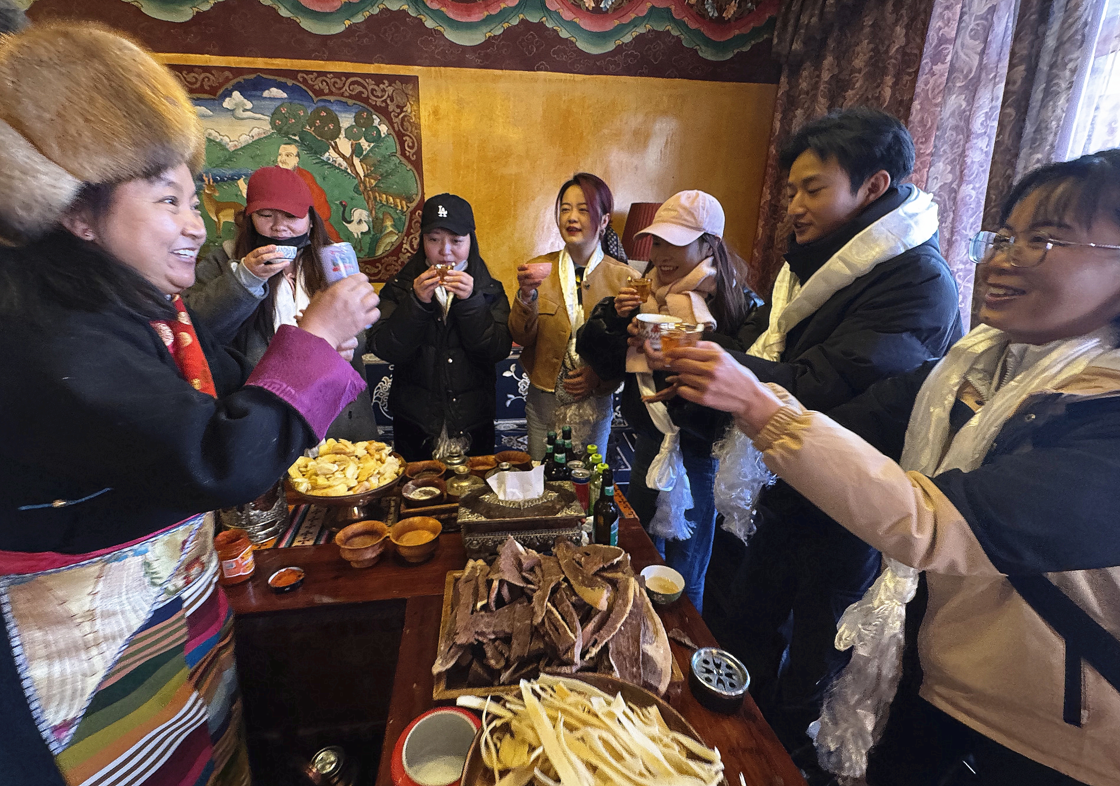 图为游客在藏族群众家中体验藏历新年。记者 白玛泽旺 摄