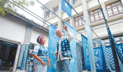 英国籍视频博主斯图尔特·维金在云南大理体验白族扎染技艺。 吴 桐摄