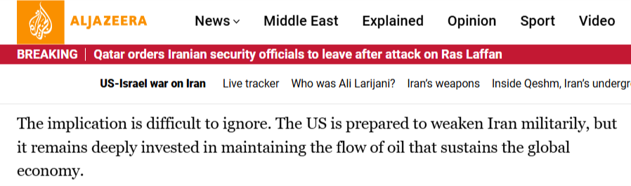 半岛电视台3月18日的报道分析称,这暗示美国已准备在军事上削弱伊朗,但仍高度致力于维持全球石油流动。