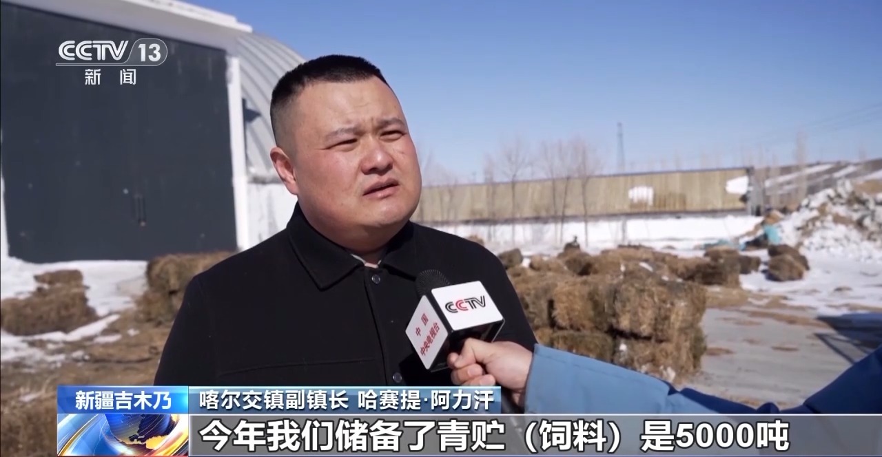 喀尔交镇副镇长哈赛提·阿力汗:今年我们储备了青贮饲料5000吨,干草10000包,这样群众就可以在家门口就近购买运输饲草料,解决他们在冬季饲草料短缺方面的困难。