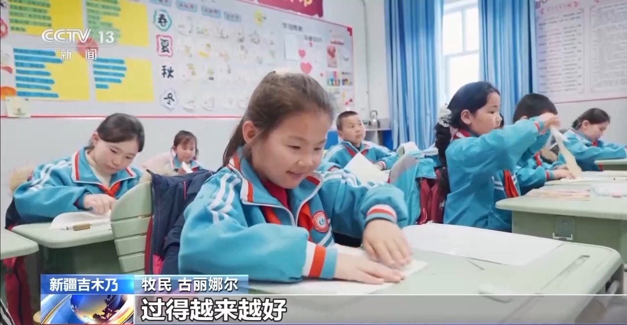 牧民 古丽娜尔:我是在牧区长大的孩子,父母一直在放牧,不会照顾我们的学习。到了镇上以后,老人和孩子的生活比较方便了,老人看病、孩子上学方便多了,就在家门口。现在做好自己的工作,过得越来越好。