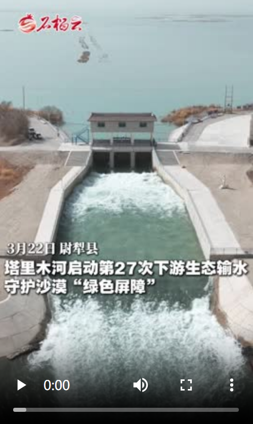 3月22日,恰逢第三十四届“世界水日”暨第三十九届“中国水周”首日,我国最长内陆河——塔里木河正式启动第27次向下游生态输水第一阶段工作。来自大西海子水库的生态水奔腾而下,顺着河道蜿蜒流淌,为下游沿岸胡杨、红柳等植被送去春日滋养,持续巩固塔里木河下游“绿色走廊”生态成果,为沙漠边缘的生态复苏注入新动能。