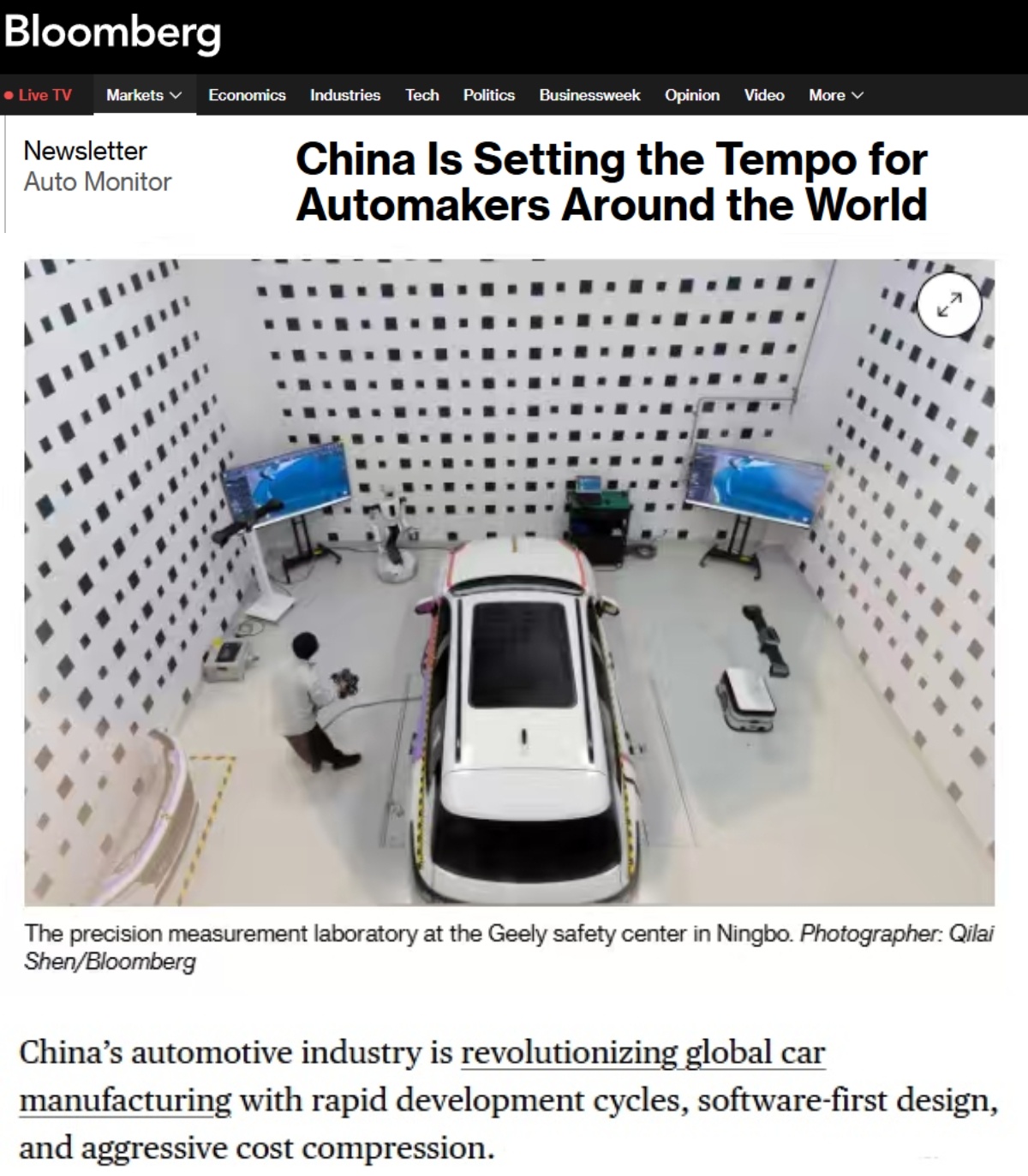 美媒:中国为全球汽车制造商树立标杆