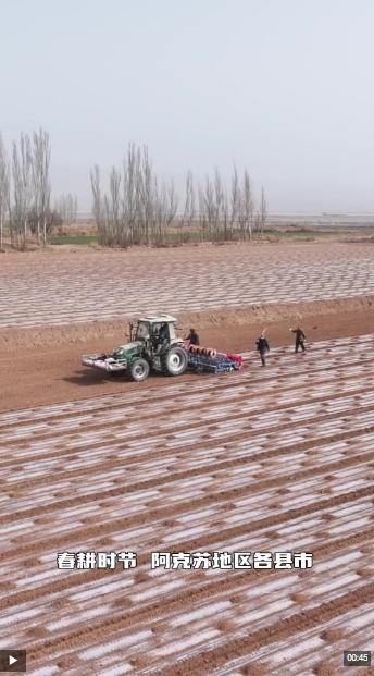 . 春耕时节,位于塔克拉玛干沙漠北缘的新疆阿克苏地区持续优化农业种植结构,大力推广“粮食作物+经济作物”套种的绿色高效新模式。