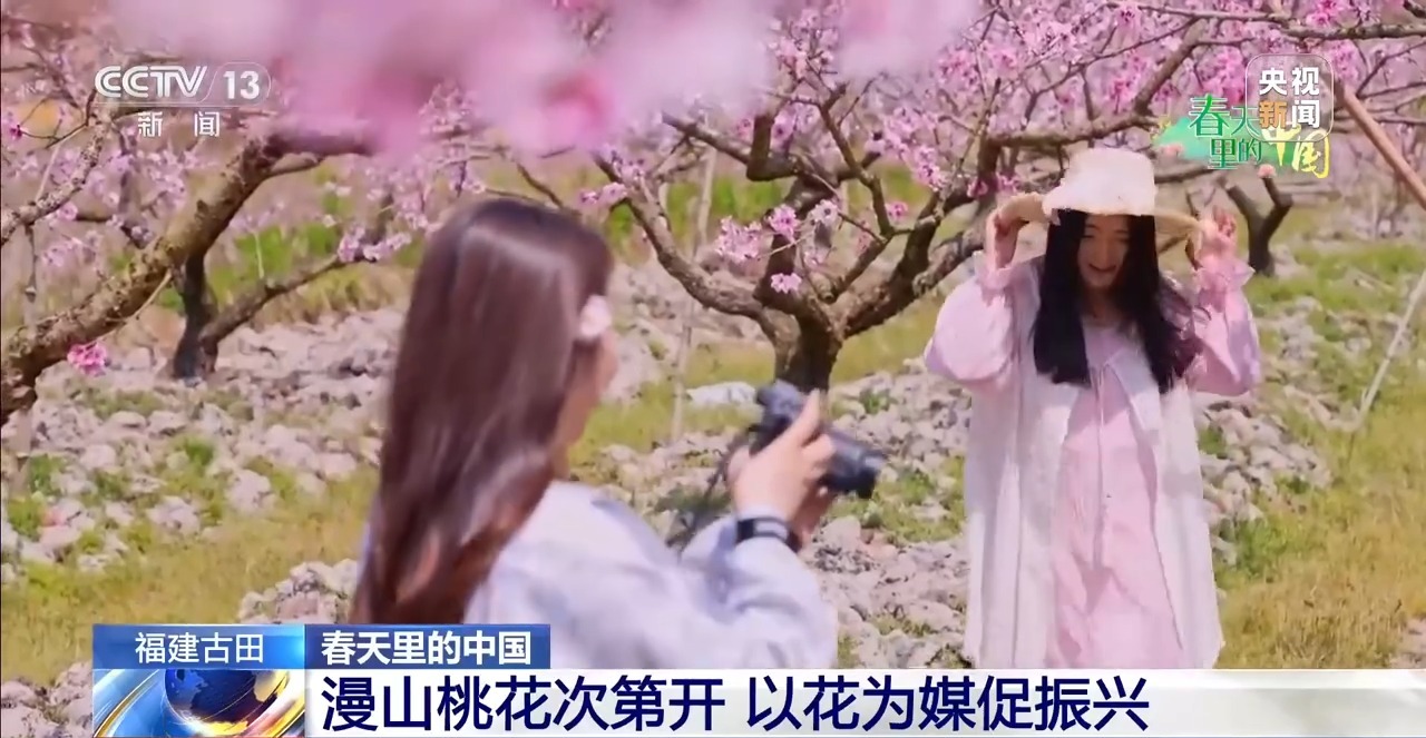 春光正好,福建宁德市古田县的三万多亩桃花进入盛花期。当地依托特色林果资源,推动农文旅融合发展。