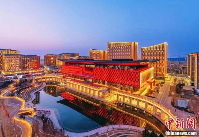 雄安商务服务中心夜景。中新社记者 韩冰 摄