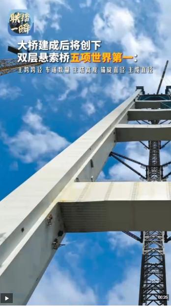 刷新世界纪录!3月26日11时许,粤港澳大湾区核心枢纽工程狮子洋通道关键控制性工程——狮子洋大桥实现东、西主塔封顶,转入上部结构施工。>>详情